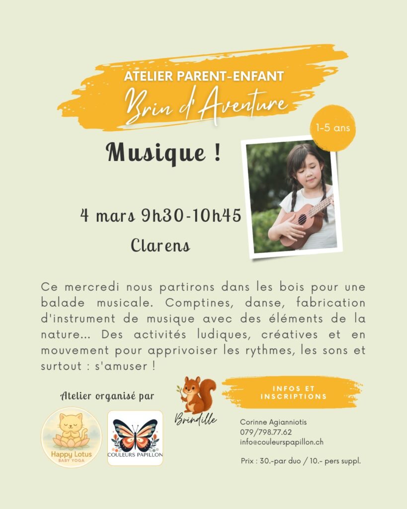 Nous partons à l’aventure avec Brindille, un petit écureuil curieux ! Un moment ludique et créatif en plein air pour s’amuser, rencontrer d’autres enfants et d’autres parents, découvrir la nature au fil des saisons, partager un moment complice et tout doux avec son enfant. Une rencontre avec un thème ou une histoire comme fil rouge et des activités à vivre ensemble. Chaque atelier se termine par un moment de jeu libre et un goûter.